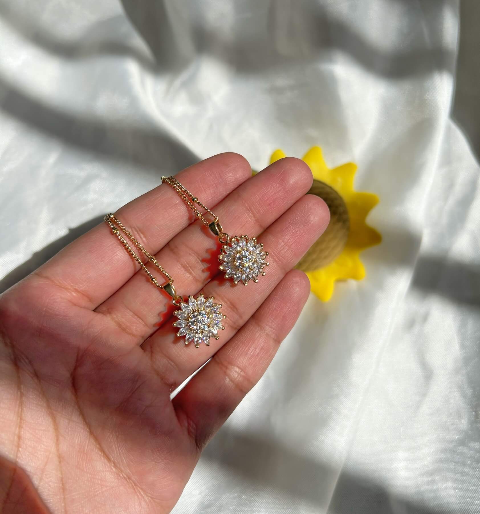 Collar de Girasol giratorio con cristales